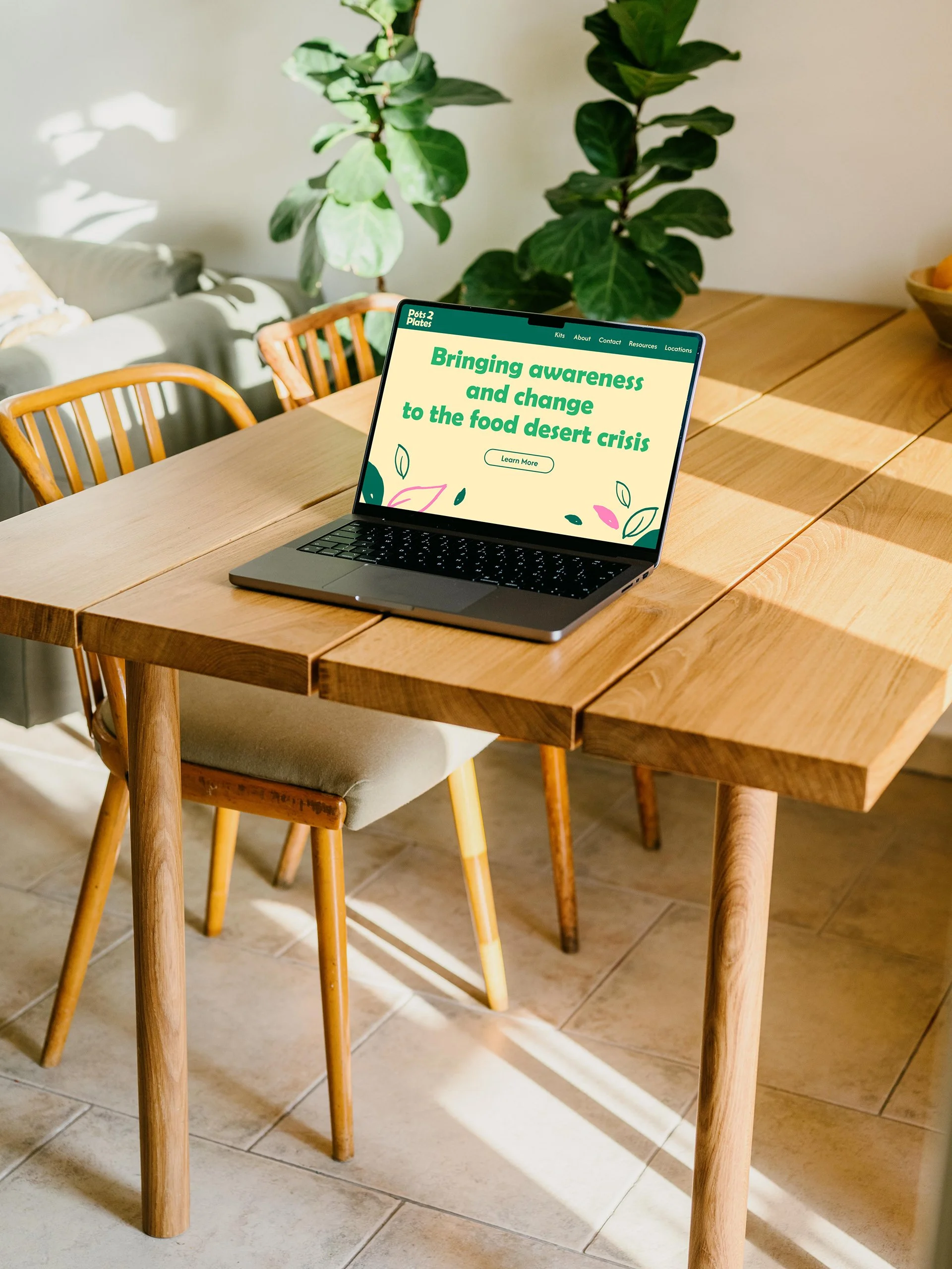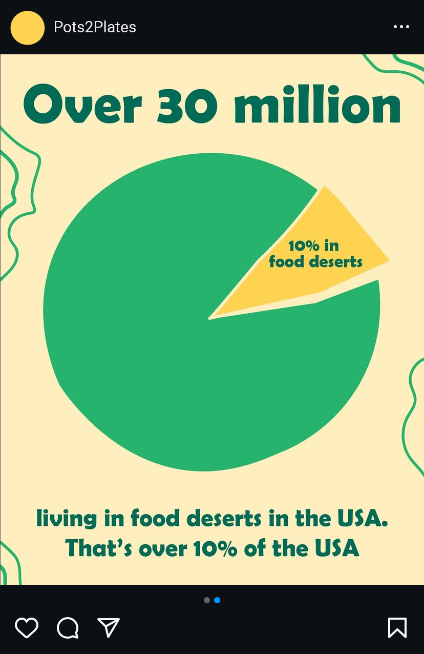 Food deserts restrict access to fresh, affordable produce and leave many communities without the knowledge or resources to address the issue. Pots 2 Plants is an academic design project that addresses this issue. The project centers around distributing kits that include a pot, seeds, and educational materials that will be distributed at grocery stores and food banks, making the issue visible while empowering communities to take small, actionable steps toward improving food access. The website and social media raise additional awareness and funding addressing the issue of food insecurity.