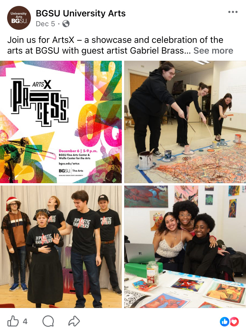 One of the main takeaways from this project was learning how to efficiently build a cohesive visual system that could adapt across multiple platforms, from social media graphics to wayfinding. I learned how to develop a consistent look and feel for the event and successfully carried it through every application with my team. Additionally, I gained a deeper understanding of the importance of collaborating with stakeholders such as students, families, and staff who had previously attended the ARTSX event, to learn from their experiences and better understand how the event could be improved through design.