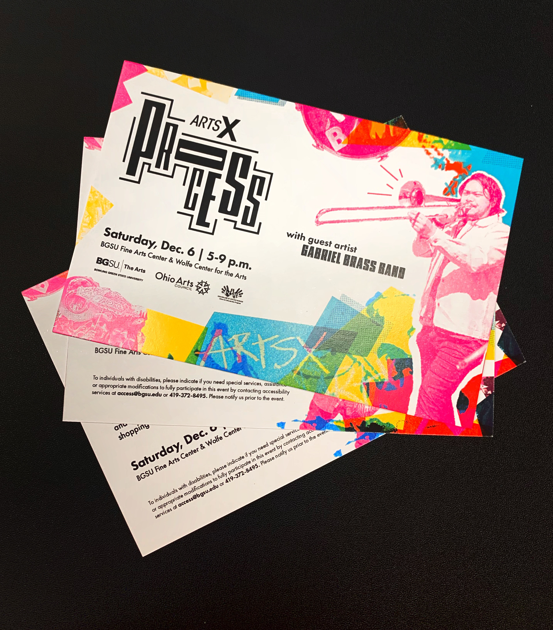 Using CMYK process colors and drawing inspiration from the guest artist, the Gabriel Brass Band, we created a bright, energetic brand that reflected the band’s performance style, the diversity of art on campus, and the dual definitions of the word “process.”